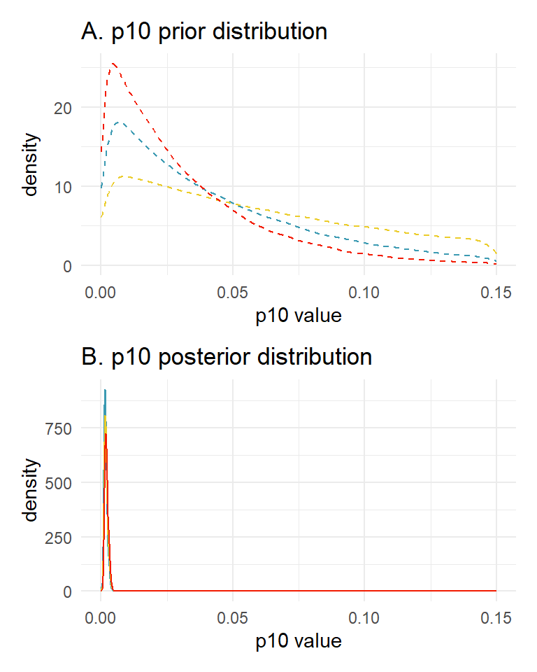 You can see that the choice of the \(p_{10}\) prior within this range has little influence on the estimated parameters.